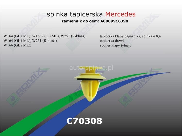 C70308 Spinka 9 tapicerki MERCEDES W164 W166 W251 0009916398 A0009916398 A 000 991 63 98 000 991 6398 B 000991639864 000 991 6398 64