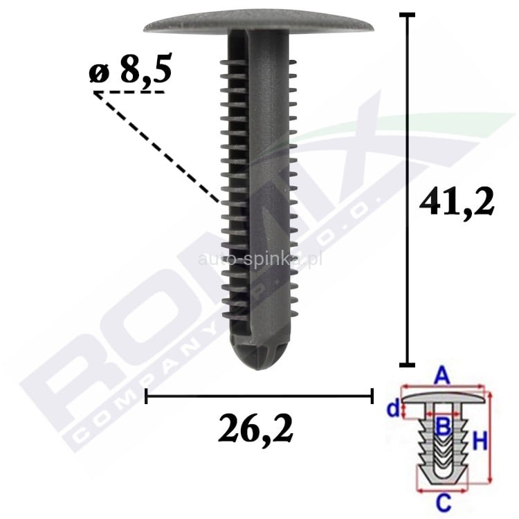 C70608 Spinka 8,5 x 40 wkładki bagażnika popiel ciemny Nissan Qashqai podsufitki Renault Trafic 2 01553-05891 0155305891 8200244430