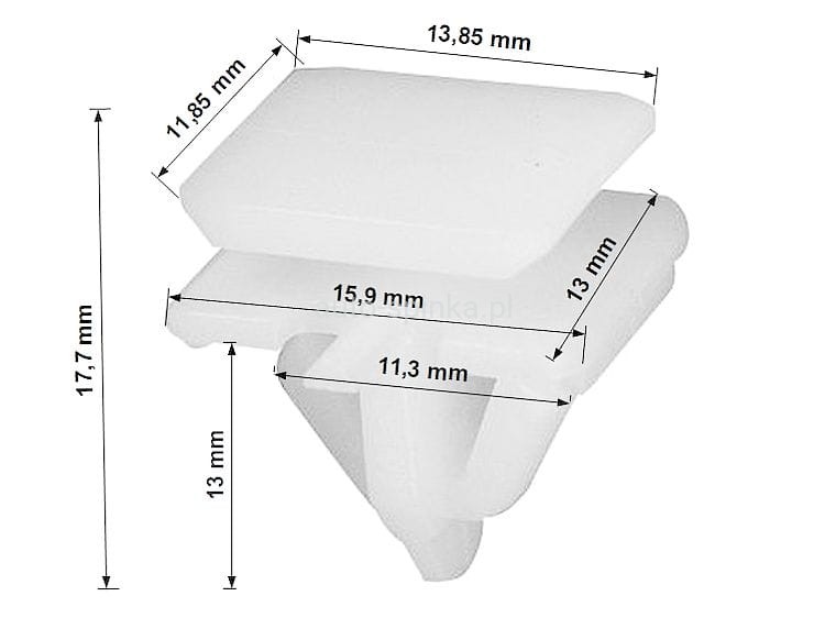 Wymiary: A 13,9x11,9 B 9,6x9,5 Ba 11,3 C 15,9x13 d 2,4 H 17,7 Ha 13 w otwór ø 10 mm